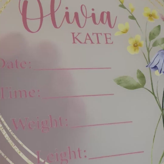 Celebrate your new baby with a acrylic birth announcement sign. Perfect as a newborn photo prop for those Fresh 48 pictures taken in the hospital or gift the mom to be as a baby shower gift.