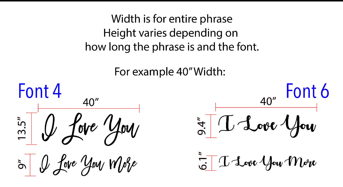 Height varies depending on how long the text is. Height will be from the highest point of the saying to the lowest point of the saying.
