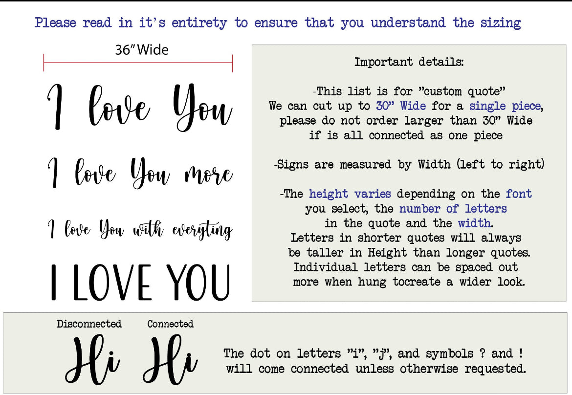 🍃 For dots on certain letters (i & j), to help make hanging the sign easier, we will edit the font to attach the dot to the letter, if you want the dot separate, please add a note during checkout.