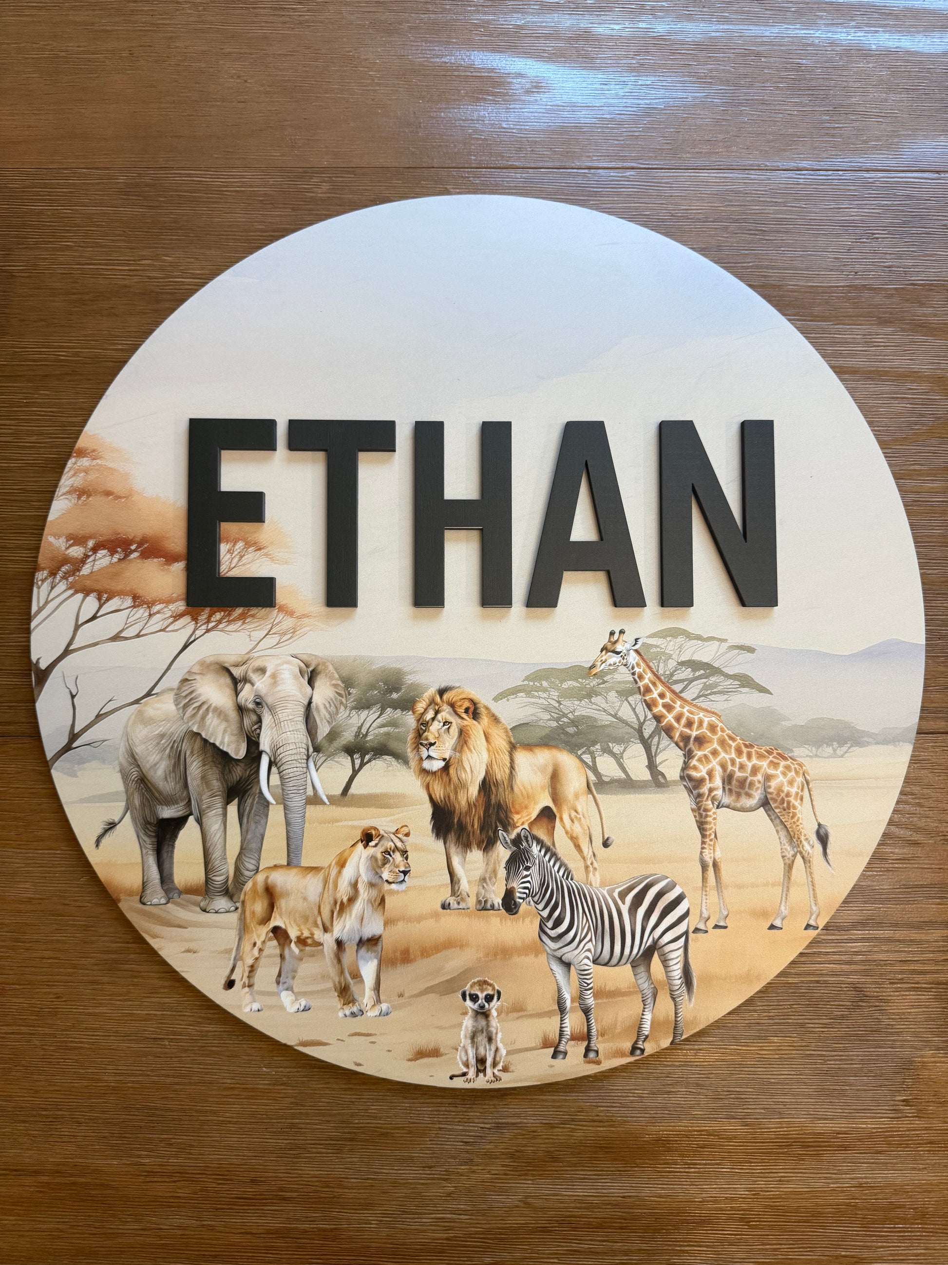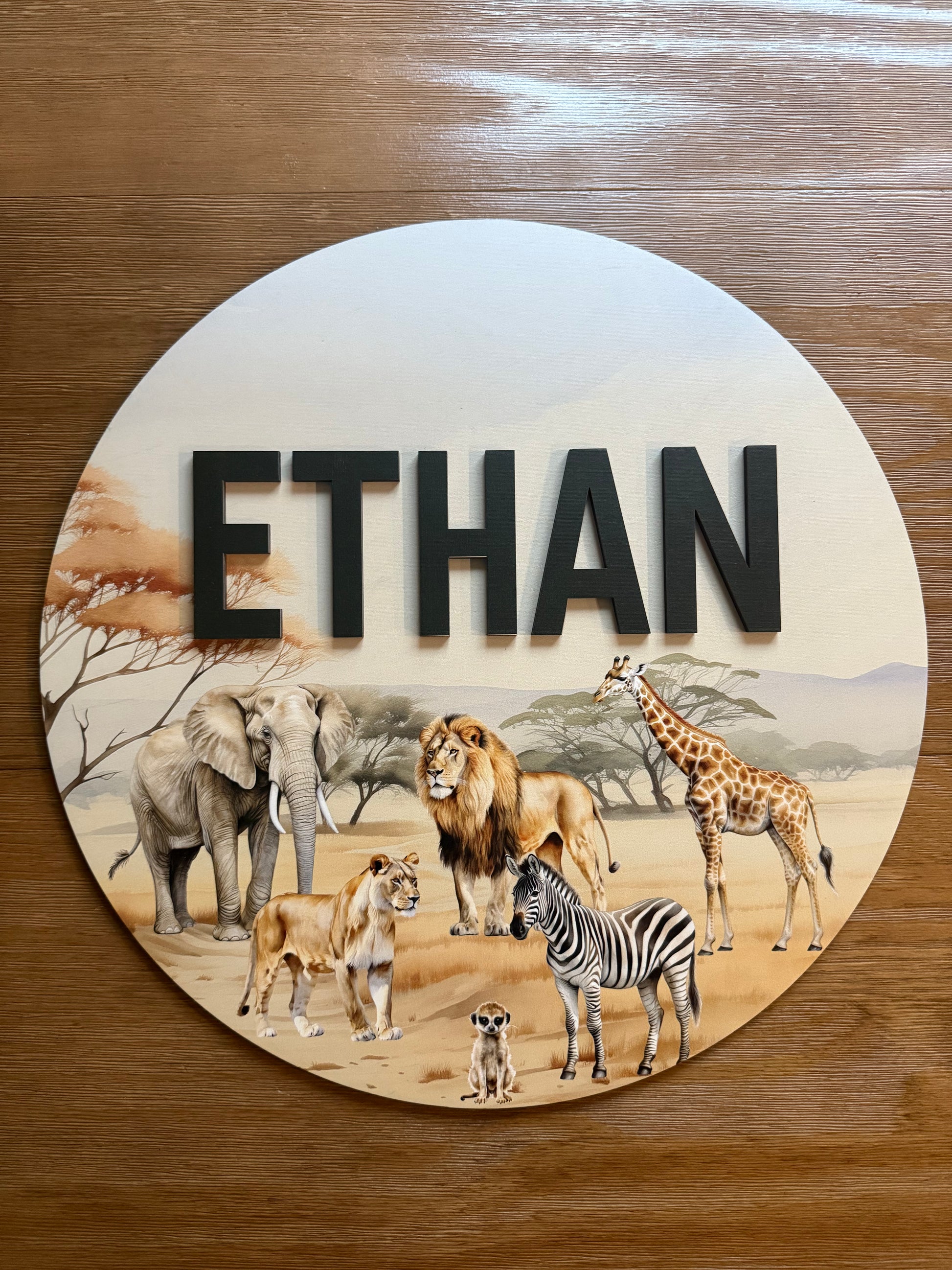 🦁✨ Bring the wild charm of the safari into your little one’s nursery! Our personalized Safari Name Sign adds a playful yet elegant touch — perfect for baby showers, new arrivals, or that final detail that makes the room feel just right.Choose from a variety of fonts and colors to match your style.
